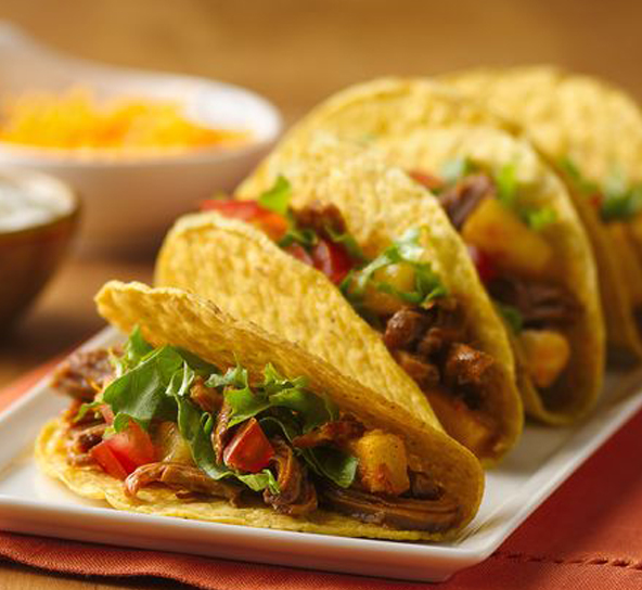 3 To serve, divide pork among taco shells (about 1/4 cup each), and top with remaining ingredients.